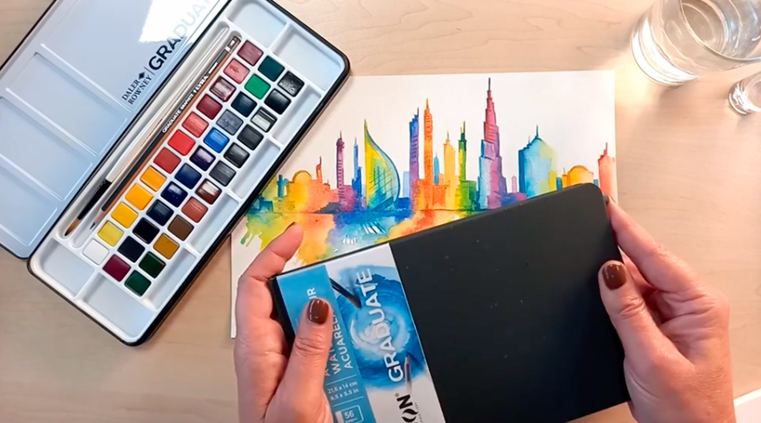 Il primo appuntamento è dedicato allo Urban Sketching e vedremo nascere lo skyline di Dubai dagli acquerelli Daler Rowney Graduate che nelle mani di Raffaella Barbieri trasformeranno un foglio bianco Canson in un magico paesaggio.